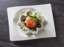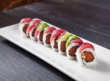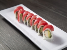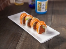 IN: SPICY TUNA, AVOCADO, WRAPPED WITH SALMON