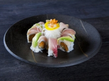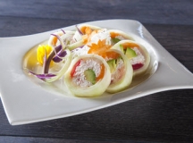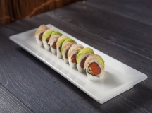 IN: CRABMEAT, AVOCADO, WRAPPED WITH SALMON
